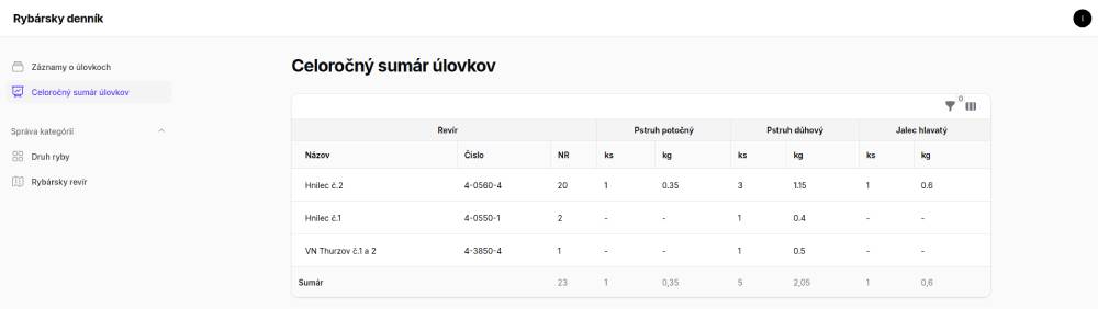 Aplikácia na evidenciu úlovkov s automaticky generovaným celoročným sumárom